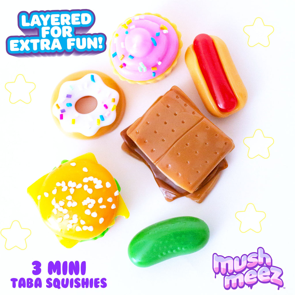 Introducing MushMeez Yummy Minis – Sweet Pack! Tiny in size but bursting with squishy fun, each 3-pack comes with three adorable dessert-themed Taba Squishies — a gooey layered s’mores, a sprinkle-topped donut, and a soft cupcake you’ll want to squish all day long!