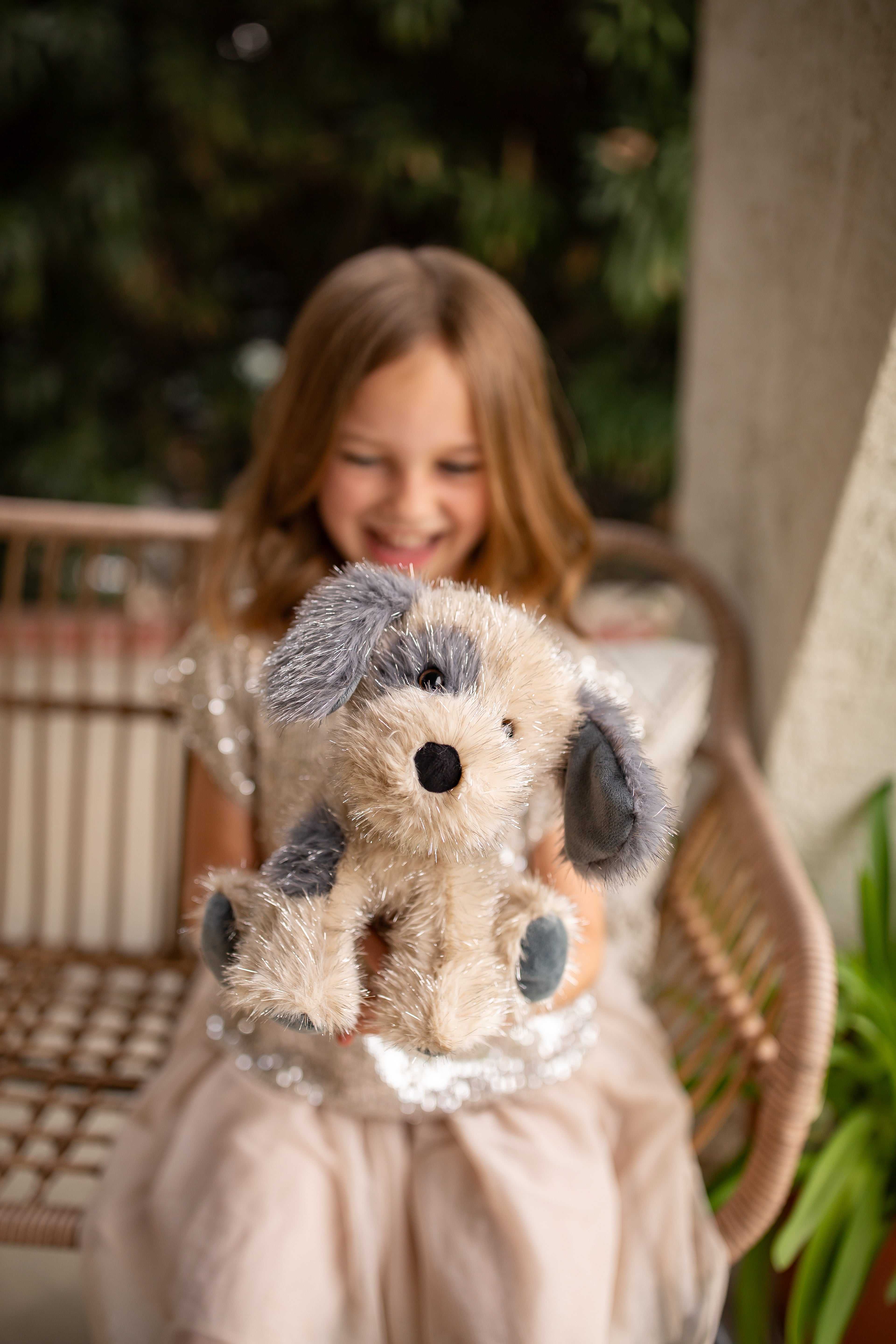 Shimmers - 8” to 10” Puppy (Soft Shiny Silver Thread Plushies) is backordered and will ship as soon as it is back in stock.